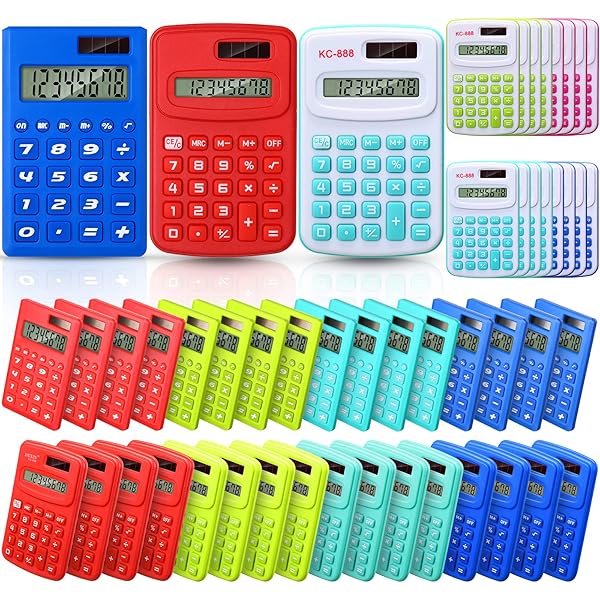 Amazon Com 48 Pcs Pocket Calculator Small Basic Standard Battery Powered Calculator Mini Colored 8 Digit Handheld 4 Function Calculator For Students Kids School Teacher Desktop Home Office 3 Designs Office Products